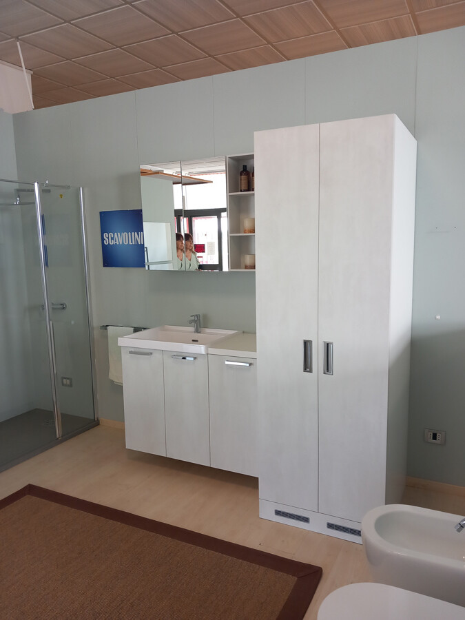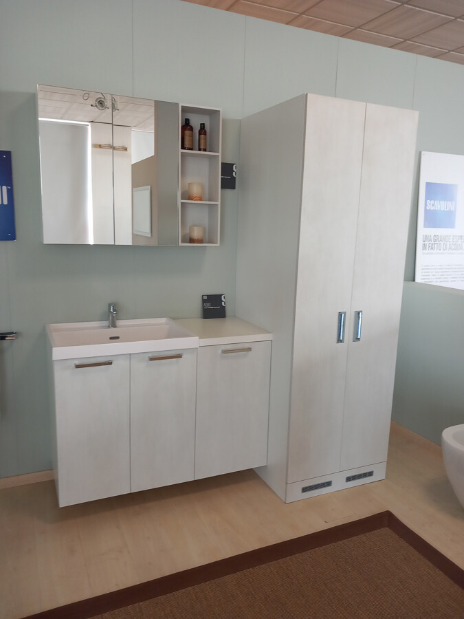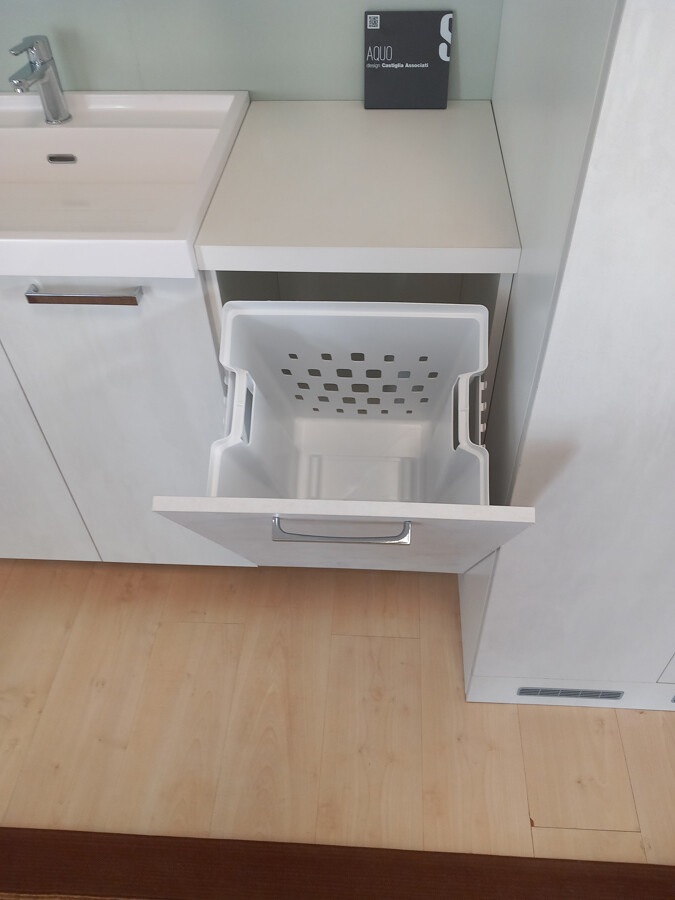 NOTE: Nel prezzo della composizione sono compresi: armadio porta lavatrice e asciugatrice, base da 45 con porta biancheria a ribalta.