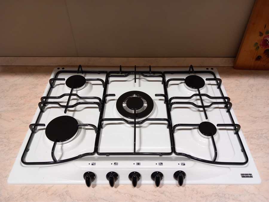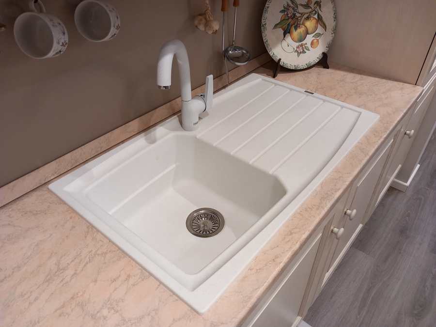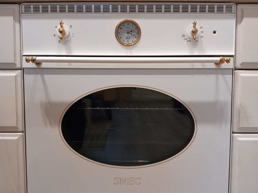 ELETTRODOMESTICI: Piano cottura Franke da 75, forno Smeg, cappa Faber, lavello Franke con una vasca e sgocciolatoio e miscelatore Franke.