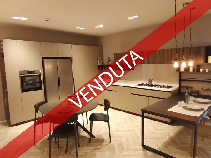NOTE: Nella cucina è presente un piano colazione su misura in Laminato finitura Metallic Touch, con spessore 4 cm. Inoltre è presente tra top e pensile un sistema Set Up con set di 3 ganci e mensole in vetro. Nell'ultima colonna della cucina, prima delle basi è presente un armadio ad angolo con dispensa. Le immagini rappresentate degli elettrodomestici sono puramente indicative ed eventuali modifiche o cambio elettrodomestici sono da concordare direttamente con il Rivenditore.