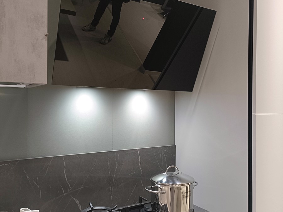 ELETTRODOMESTICI: Frigorifero, forno e lavastoviglie Electrolux, piano cottura Grundig, cappa Faber in vetro nero, lavello una vasca Franke e miscelatore cromo Nobili.