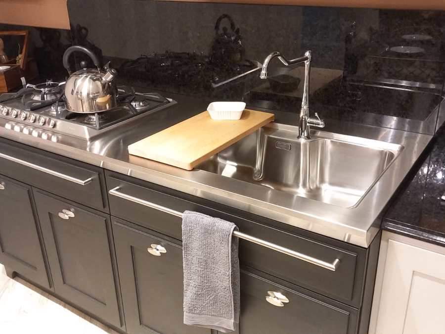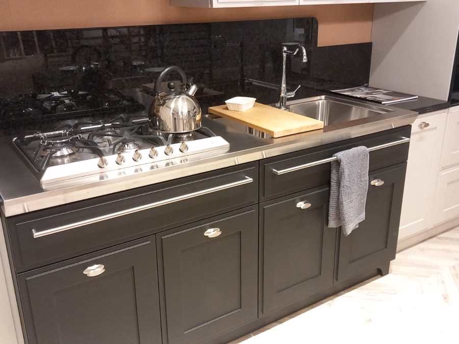 NOTE: Il monoblocco lavello e piano cottura è laccato opaco con finitura Ghisa.