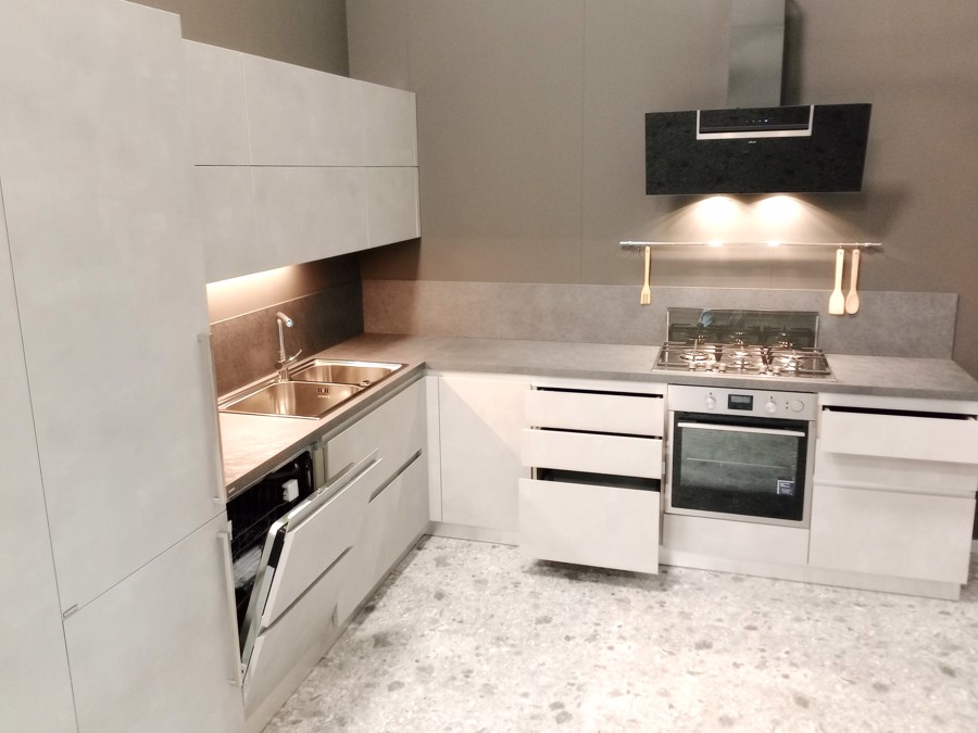 ELETTRODOMESTICI: Lavastoviglie da 60 Electrolux, lavello da 90 due vasche inox Smeg, miscelatore cromato Nobili, frigorifero da 60 Electrolux, piano cottura da 75 inox Electrolux, forno da 60 inox Electrolux e cappa da 90 in vetro nero Sheen Elica.